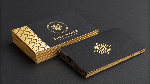 плотные дизайнерские карточки, глянцевое или матовое покрытие, декоративная фольга.
